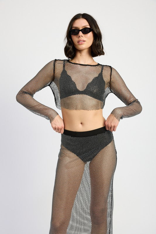 RHINESTONES MESH CROPPED TOP